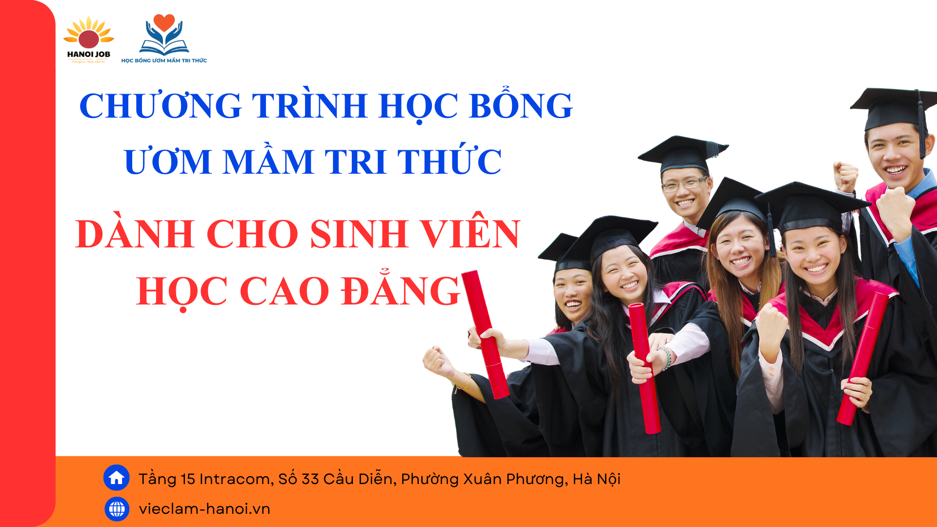 Hà Nội Job triển khai Chương trình Trao Học Bổng Toàn Phần dành cho sinh viên Cao đẳng nghề vừa học – vừa làm, nhận bằng chính quy do Bộ Giáo dục cấp.